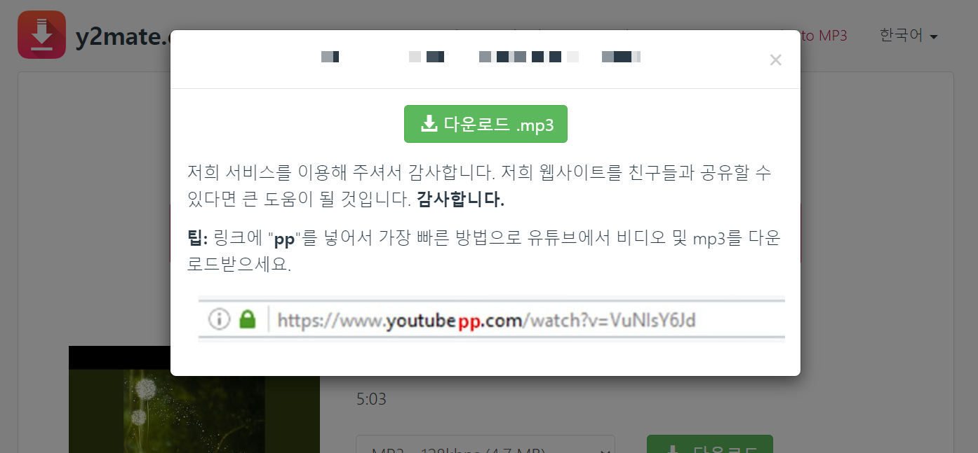소개해 드릴 유튜브 음원 추출 사이트는 y2mate 입니다. 말 그대로 유튜브에서 MP3 다운로드를 할 수 있는 사이트입니다. 이번 포스팅에서는 이게 합법이냐 불법이냐 이야기는 따로 하지 않겠습니다. 다음 포스팅에서 조금 적나라(?)하게 까 보도록 할 거니까요.