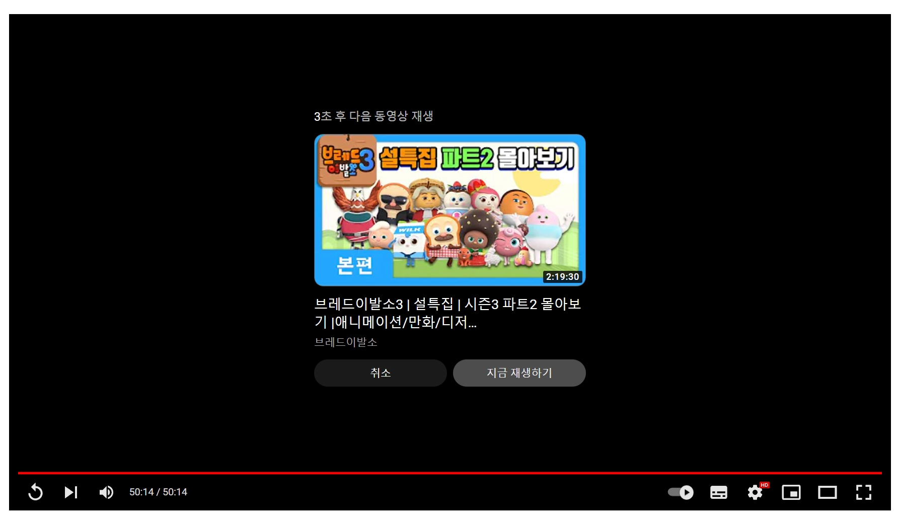 추가적으로 자동재생은 말 그대로 현재 재생중인 영상이 끝나면 자동으로 다음 영상이 재생되는 기능입니다.