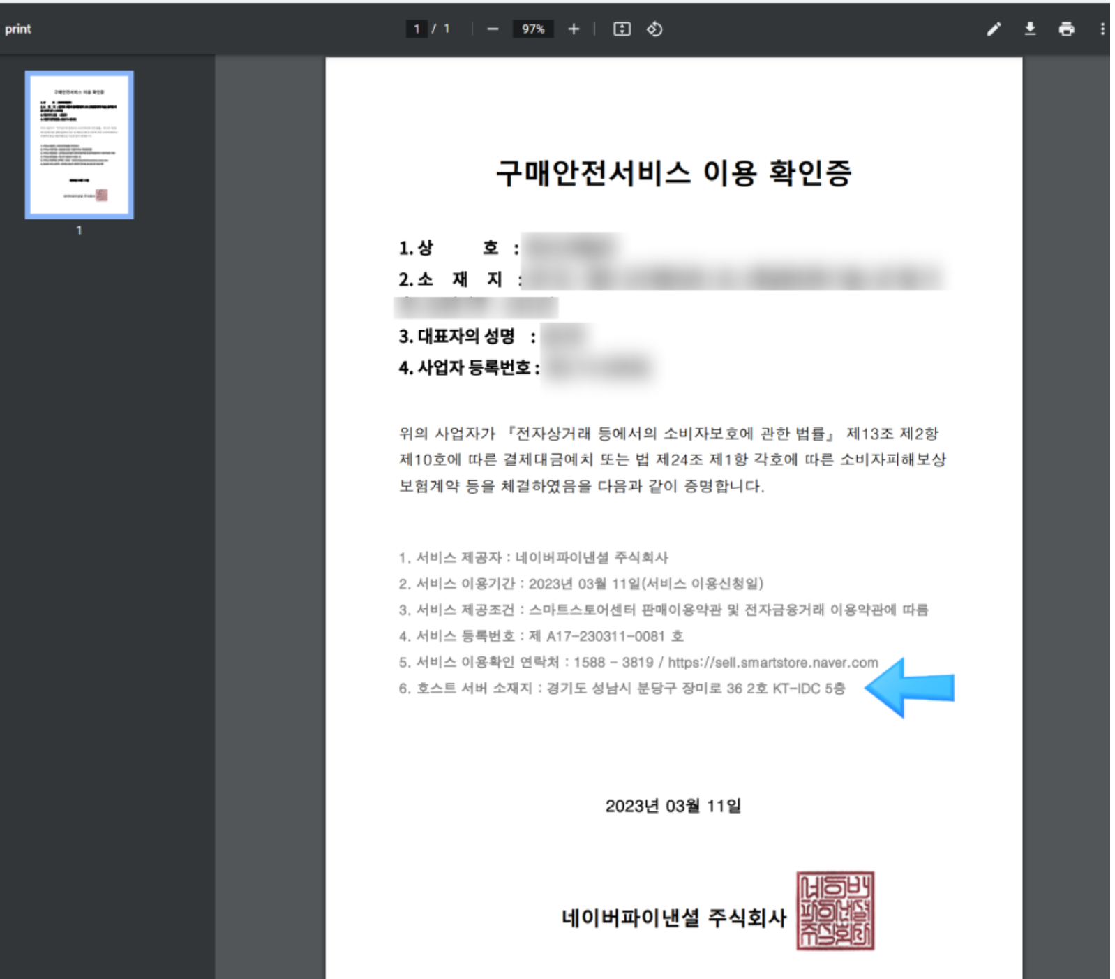 저처럼 스마트스토어에서 구매안전서비스 이용 확인증을 발급받으셨다면 저와 똑같이 적어주시면 되겠어요.